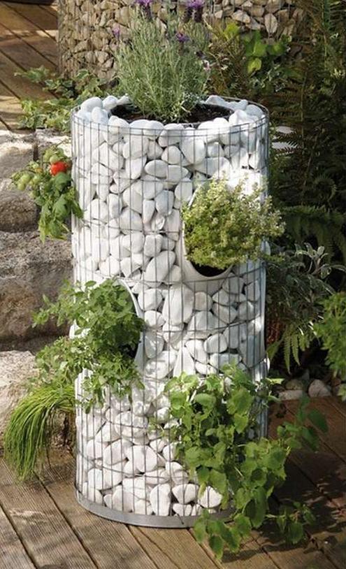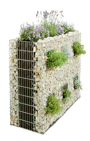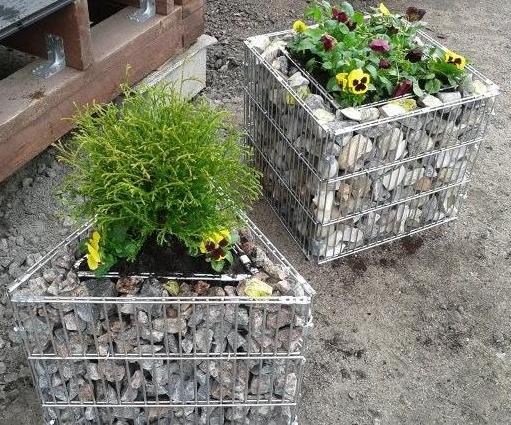 Клумбы и вазоны для цветов из габионов это удивительное решение для украшения территории. Благодаря гибкости конструкции можно оформить цветник любой, самой необычной конфигурации, сделать многоярусную или приподнятую клумбу. Перед тем как сооружать клумбу, землю следует хорошо разровнять и уплотнить. Делается это во избежание перекосов конструкции в процессе оседания грунта. При устройстве клумбы необходимо предусмотреть гидроизолюцию, если цветы будут размещены без горшка. Гидроизоляцию можно сделать с помощью геомембраны или полиэтиленовой пленки.